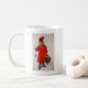 La fille de Carl Larsson tenant des bougies et des pommes. Brita porte une robe rouge de Noël et un casquette