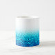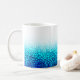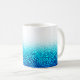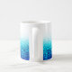 Des bulles dans divers bleus mouillent du fond de cette tasse.