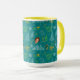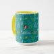 ake your daily dose of holiday cheer—and coffee!—in this amazing Buddy the Elf Pattern Mug. This unique mug is packed with an all-over graphic collage featuring everything fans love: Buddy's face, the New York City skyline, and famous phrases like "World's Best Cup of Coffee," "Son of a Nutcracker!," and "This is NOT the North Pole." With its eye-catching teal background and contrasting whimsical yellow handle and interior, this two-tone mug is a must-have for any true Elf enthusiast. It's the perfect size for cozy holiday drinks and makes an excellent, unique Christmas gift for coworkers, friends, or anyone who appreciates the festive fun of the classic film.