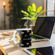Décoré de bees de bosse jaunes et noirs souriantes et de grands tournesols aquarellés. Un arrière - plan noir chic. Personnalisez et ajoutez un nom.