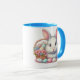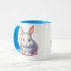 Un adorable lapin blanc de Pâques est prêt avec un panier d'oeufs pastel de Pâques et des fleurs de printemps sont prêts à se cacher le matin de Pâques. Cette jolie tasse est prête pour votre café ou thé du matin de Pâques !