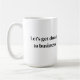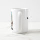Cette tasse de café en céramique est montrée avec un chaton mignon dans un cadre d'affaires imprimé avec un texte qui dit, "Mettons-nous au travail". Customiser ou acheter tel quel.