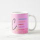 Cette tasse sera un favori pour tout le monde, de votre petite-mère douce à votre soeur adolescente. Avec le bon message, un mug peut devenir le compagnon précieux de n’importe qui pour les années à venir. Ce design présente une belle lettre dessinée à la main "C" en noir cursif sur un arrière - plan d'aquarelle étonnant. Le côté gauche présente un dégradé chaud de jaune à rose, tandis que le côté droit affiche un dégradé doux de rose à jaune. Autour de la lettre sont des mots vibrants de différentes couleurs, dont le bleu, l'orange, le rouge, le violet et le rose, mettant en évidence des traits positifs commençant par la lettre "C". L'effet global est un design visuellement attrayant et stimulant qui célèbre la beauté de la lettre "C" et ses qualités associées. L'arrière - plan aquarelle ajoute une touche d'élégance et de sophistication, ce qui rend ce design parfait pour des raisons d'inspiration ou de motivation. Dimensions : 11 onces : 3,2 po D x 3,8 po H Microwave et lave-vaisselle sans danger Construction solide et céramique Satisfait aux exigences de la FDA en matière de salubrité des aliments et des boissons Imprimé sur demande à Reno, NV