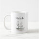 Dessin du désert tasse à café personnalisée, avec un dessin noir et blanc d'une scène de cactus saguaro. Avec des lettres personnalisables en noir, vous pouvez ajouter votre propre nom. Un joli produit du sud-ouest pour déguster votre boisson chaude préférée.
