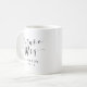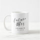Mug à café personnalisé conçu pour la future mariée avec un design de calligraphie manuscrite moderne et stylé "future Mme". Personnalisez avec le nom et la date.