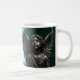 Statue d'ange foncé aux yeux brillants sur une route forestière réfléchissante, tasse d'imaginaire gothique, cadeau unique parfait. Ange gothique aux yeux brillants sur une route forestière - une tasse d'imaginaire mystique qui inspire force et mystère, parfait comme un don unique.