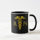 Image du symbole médical de caduceus et des lettres stylisées R et N - Infirmière inscrite. Élégante tasse à café d'art. Vous pouvez transférer cette conception à un autre produit, il suffit d'utiliser l'option ci-après. Amusez-vous, achetez-en un, amusez-vous, restez en sécurité et soyez heureux !