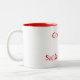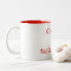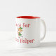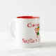 Tasse à café en blanc avec un intérieur rouge, avec un elfe de vacances. Le texte dit Cocoa pour Père Noël Helper. Customiser cette tasse ou acheter tel quel.