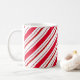 Une tasse à café de vacances est présentée ici avec une impression festive de rayures de sucre de canne de Noël. Customisez cet objet ou achetez tel quel. Image stock freepik.com