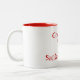 Tasse à café en blanc avec un intérieur rouge, avec une souris sucre de canne de vacances. Le texte dit Cocoa pour Père Noël Helper. Customiser cette tasse ou acheter tel quel.