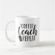 Connais-tu un professeur qui court avec du café ? Ils vont adorer cette mignonne tasse de citation avec le dicton "café, enseigner, répéter" en typographie à la main noire avec une illustration de tasse de café embellie au coeur.