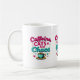 Ce design dynamique de t-shirt présente une typographie rétro ludique avec l'expression Caffeine Cats and Chaos en gras et ondulé disposition. Complété par une tasse de café vintage et des icônes de pattes fantaisistes, il incarne un style animé et décalé, parfait pour les amoureux de les chats et les amateurs de café.