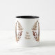 Une jolie couronne d'automne dans les tons marron, brun brun, brun et crème entoure l'image aquarelle d'un adorable chien de Cairn Terrier. L'image est imprimée deux fois sur la tasse, avec votre texte personnalisé entre eux.