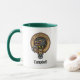 Le badge Campbell crest entouré d'une sangle et boucle sur l'arrière - plan tartan. Texte personnalisé des deux côtés.