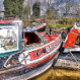 Un design artistique de vieux bateaux à étroit amarrés sur le canal en attente de restauration.