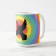 Cette tasse à café présente une silhouette de canard parmi un motif de cercles arc-en-ciel rétro. Vous pouvez transférer ce design coloré à d'autres types de produits et cadeaux. Oeuvre originale de Wilderness Store