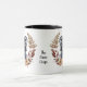Une jolie couronne d'automne dans les tons marron cannelle, tan et crème entoure l'aquarelle d'un beau chien noir Corso Cane. L'image est imprimée deux fois sur la tasse, avec votre texte personnalisé entre eux.