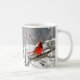 Un beau cardinal du nord était perché dans un arbre neigeux en hiver.