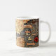 Une tasse amusante pour un amoureux de l'histoire ou un voyageur, avec une carte médiévale en bleu et beige et un parchemin avec votre nom ou texte imprimé sur elle en lettres de style archaïque.