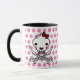 Buvez votre café de cette tasse classique avec cette caricature mignonne et effrayante d'un crâne et os pirates Jolly Kitty. L'arrière - plan est un point de polka rose. Et pourquoi n'y aurait-il pas un pirate de chat ? N'est-ce pas mignon un crâne de chat et un cri de os pour les pirates de chat ? Jolly Kitty est bien sûr une pièce de théâtre sur le Jolly roger, le crâne et les os drapeau les pirates montrent leurs victimes tout en les poursuivant. J'ai fait deux versions. Un basé sur un vrai crâne d'un chat et un plus mignon dans une version manga. En tant qu'arrière - plan, j'ai choisi noir sinistre, rouge sang et rose girly. Bien que la crête soit connue comme "crâne et os", j'ai choisi deux sabres incurvés au lieu d'os. Parce que je pense que les sabres ont l'air cool.
