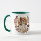 Une jolie couronne d'automne dans les tons marron, brun brun, brun et crème entoure l'image d'un roi Cavalier Charles Spaniel. L'image de chien est imprimée deux fois sur la tasse, avec votre texte personnalisé entre eux.