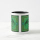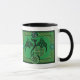 Dragon noir tribal avec ailes de travail de noeud celtique vert. Des nuances de noeud vert et celtique travaillent tout derrière et autour du dragon et du trèfle à quatre feuilles.