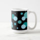 Un design élégant avec un arrière - plan noir de différentes tailles de cercles d'aqua et des points dans un motif aléatoire.