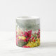 Un beau champ de dahlia fleurit dans le fuchsia, rose moyen, blanc, pêche et jaune contre un ciel gris onirique. Personnalisez avec votre nom ou message en caractères gris foncé.