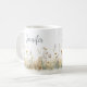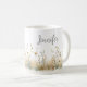 Cette belle tasse à café présente un champ rustique de fleurs sauvages douces à l'aquarelle. Ajoutez un nom pour la personnaliser. Fait un excellent cadeau pour la future mariée, la demoiselle d'honneur, la maman, la meilleure amie ou la fille ! Créé par Simply Farmhouse Press.