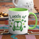 La tasse de la Saint Patrick avec un camion et la citation "beaucoup de chance". Choisissez entre une tasse à accent vert ou une tasse régulière pour célébrer ce jour de chance.