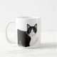 Le chat noir et blanc ou de smoking veut savoir où son café est tasse de photo. Le texte peut être changé ou enlevé avec le BOUTON de PERSONNALISER.
