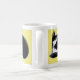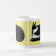 Un stylisé, couleur, dessin de bande dessinée d'un chat de smoking, s'est accumulé de beaucoup de lignes fines hachées. Le chat est courbé, remplié dedans, il est queue à travers la base du dessin. L'arrière - plan sur cette variation d'impression est jaune.