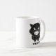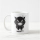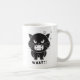 Chat noir mignon et en colère qui baise Quoi. Chaton noir furieux avec bouche ouverte montrant des dents pointues.