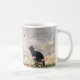 Un chat noir calme est assis dans une parcelle de jolies fleurs et regarde un papillon coloré se faufiler dans l'air. Les mots "Parfois, ce sont les petites choses qui apportent de la joie à votre journée" peuvent être enlevés ou changés si vous le souhaitez.