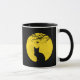 Mon décor d'automne avec la silhouette d'un chat Maine Coon observant un papillon et tombant feuille devant une pleine lune jaune.