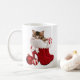Le ragondin tigré mignon du Maine dans les bottes fraîches de Noël, avec des sucres de canne et des ornements de Noël, a conçu par l'artiste Maryline Cazenave.