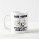 Chats + Café = Matins Meowgical. Les éléments essentiels pour commencer la journée. Cette image présente un design ludique avec un chat niché dans une tasse de café. Le texte ci-dessus se lit "Chats + Café" et en-dessous, il dit "Les Matins Meowgical". Le chat est dessiné dans un style simple, avec des yeux fermés et une expression détendue, comme pour profiter d'un matin cosy. La tasse de café est remplie de grains de café, ajoutant au thème d'un début de journée relaxant et agréable. Les empreintes de pattes éparpillés autour du texte ajoutent une touche mignonne et fantaisiste, en insistant davantage sur la connexion entre les chats et le café. Dans l'ensemble, l'image est une représentation légère et charmante d'une routine matinale parfaite d'un amoureux des chats.