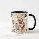 Mug dans un motif de chats aquarelle en coups de pinceau fluides et tourbillonnants inspirés de l'art chinois, en dégradés de rouge, bleu, vert et noir, se mélangeant harmonieusement avec des feuilles stylisés.