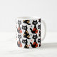 Un arrangement ludique et fantaisiste de chats noirs décorés avec des fleurs audacieuses et colorées dans les tons rouge, orange et beige. L'arrière - plan est blanc, ce qui contraste agréablement avec les personnages de chats foncés. Idéal pour un projet d'Halloween mignon ou toute autre période de l'année