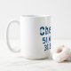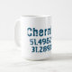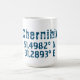 Le design de la tasse à café présente les coordonnées de latitude et de longitude de Chernihiv, en Ukraine, dans une police bleu foncé en détresse. Chernihiv est situé dans le nord de l'Ukraine et a été surnommé "La ville des légendes".