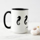 Cinq hippocampes noirs nagent en ligne autour de la tasse. Sous vous pouvez Personnaliser avec votre nom ou autre texte (ou supprimer le texte entièrement).