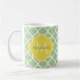 Mug Chic Pastel Green Quatrefoil Jaune Nom Monogramme