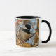 Ajoutez une touche de nature et de fantaisie à votre café, thé ou boisson chaude préférée avec cette tasse à thème de la faune ! Un adorable poulet à carreaux noirs regarde avec nostalgie la nourriture présentée dans deux mains différentes, et se demande s'il devrait aller pour les graines de tournesol de la main A ou de la main B. Décisions, décisions. Basé sur la photographie originale de W.H. Sim. Tous droits réservés. Voir plus sur zazzle.com/walkswithnature