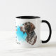 Un portrait en aquarelle d'un beau chien pointeur allemand à cheveux courts est la caractéristique sur les deux côtés de cette tasse. Chaque image est placée sur un arrière - plan bleu vif. Entre les deux images est le texte qui décrit ce compagnon loyal et ludique, avec "ALLEMAND SHORTHAIRED POINTER" en noir en bas. Tout le texte est facilement customisé à tout ce que vous préférez afin que vous puissiez décrire votre propre ami loyal !