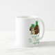 Cette mignonne tasse de la Saint-Patrick présente trois mignonnes chiots de repérage prêts à célébrer la Saint-Paddy's avec leurs casquettes leprechaun et leur marmite d'or. Le texte vert comporte également deux shamrocks !