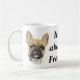 Profitez de votre boisson préférée, chaude, dans ma mignonne, bulldog français, chiot tasse à café. "Tout est sur mon français". Parfait pour les amoureux de les chiens, et tous ceux qui aiment la race de bulldog française. Oeuvre de Sally Lannier / Dessins de rêves peints