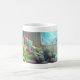 Un petit enfant mignon avec une grande chose de chocolat chaud sur une montagne des coussins. Appréciez.