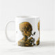 Art vintage de crâne de Van Gogh sur la tasse de café. Le crâne fume une cigarette,