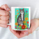 Une mignonne tasse à café pour les amoureux de les chats. Chat, chaton et fleurs, style d'art populaire, l'IA produit des oeuvres d'art.
