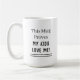 Papa va simplement adorer cette citation spéciale et cette tasse mémorable qui montre à quel point ses enfants l'aiment ! Cadeau idéal pour tout papa spécial. Le texte en deux polices différentes est "Cette tasse prouve que mes enfants m'aiment !" avec un double soulignement.